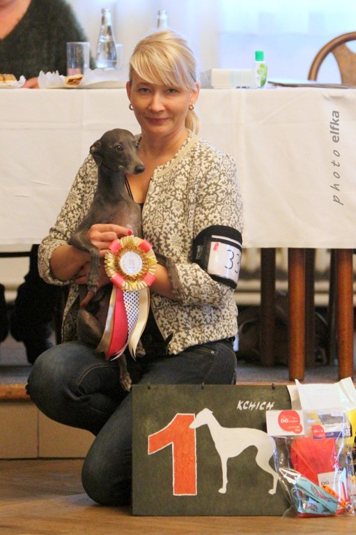 V sobotu 7.11.2015 pořádal Klub ch. italských chrtíků klubovou výstavu v Praze v hotelu Svornost. Bylo přihlášeno celkem 51 chrtíků. Posuzoval pan rozhodčí Tibor Havelka ze Slovenska, já jsem přihlásila Bertuccii do štěńátek na otrkanou, Francescu do otevřené třídy a naši Koketku do Top Classu, aby nezapomněla na výstavní šum. Ještě byl přihlášený náš odchov Antonello do mezitřídy.
