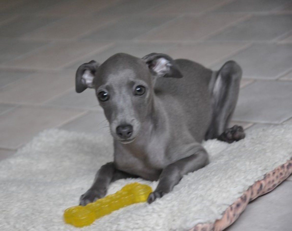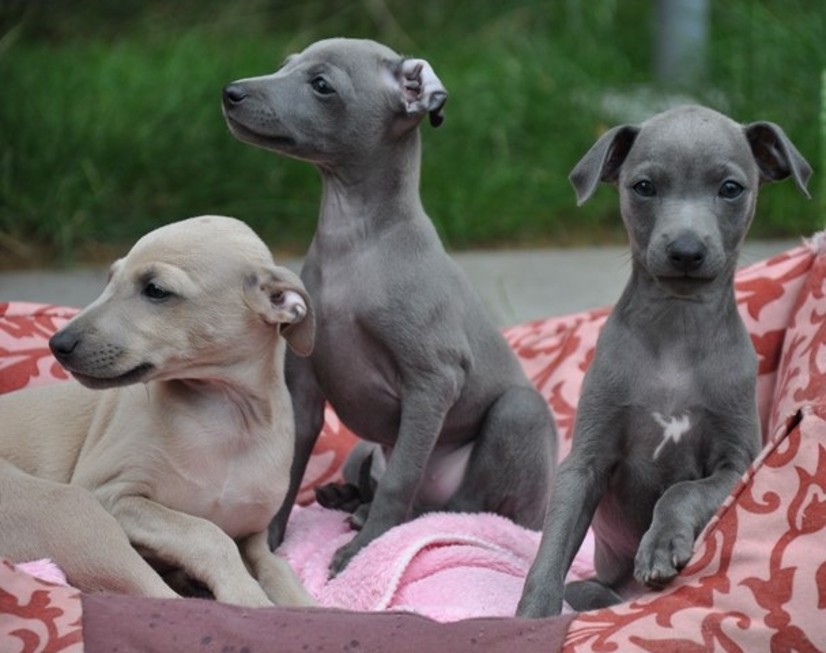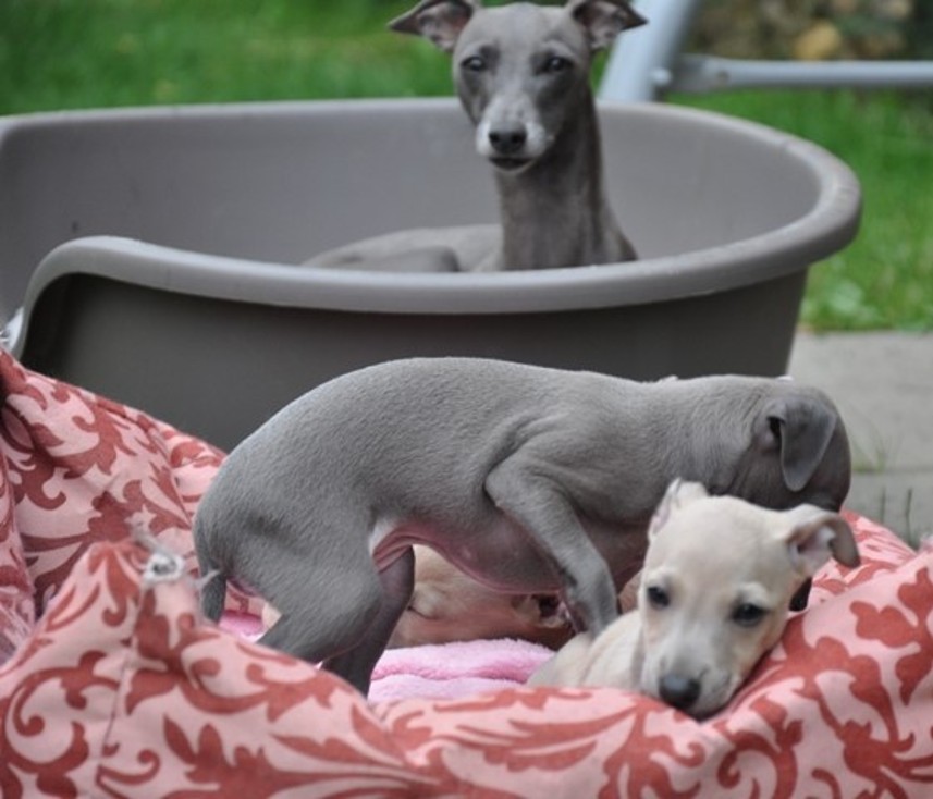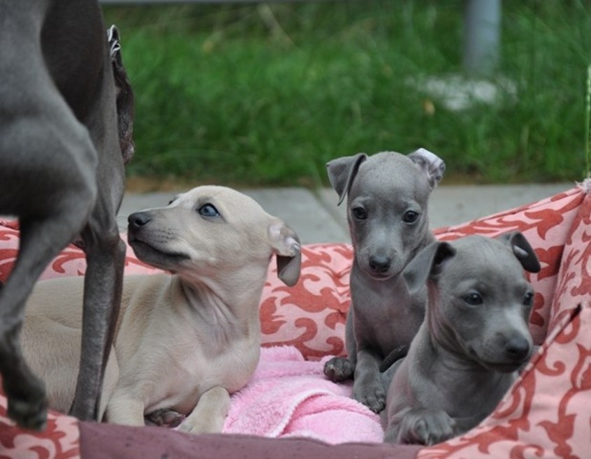 Naše štěňátka mají již 6 týdnů, pomalinku se jim začíná rýsovat vzhled a povaha. Největší zlobidlo a pištidlo je určitě Bertuccia, chudáci noví majitelé, už teď je litujeme. Nejmenší štěňátko je Belissa, bude to jemná fenka, povahou milá a hodná, hodně nám připomíná maminku Koketku. Bonelli je aktivnější pejsek, při správném vedení bude jistě poslušný a bude radost s ním pracovat či něco podnikat, je učenlivý a již nyní velice dobře reaguje na zavolání. Hodně nám připomíná Antonella z A vrhu. Čtvrté štěńátko je Battello. Battík je silnější kostry, pravděpodobně bude na horní hranici výšky, luxusní barvu srsti zdědil po svém zahraničním otci. Povahou je klidnější, vyhledává spíše lidskou společnost než chrtí smečku.