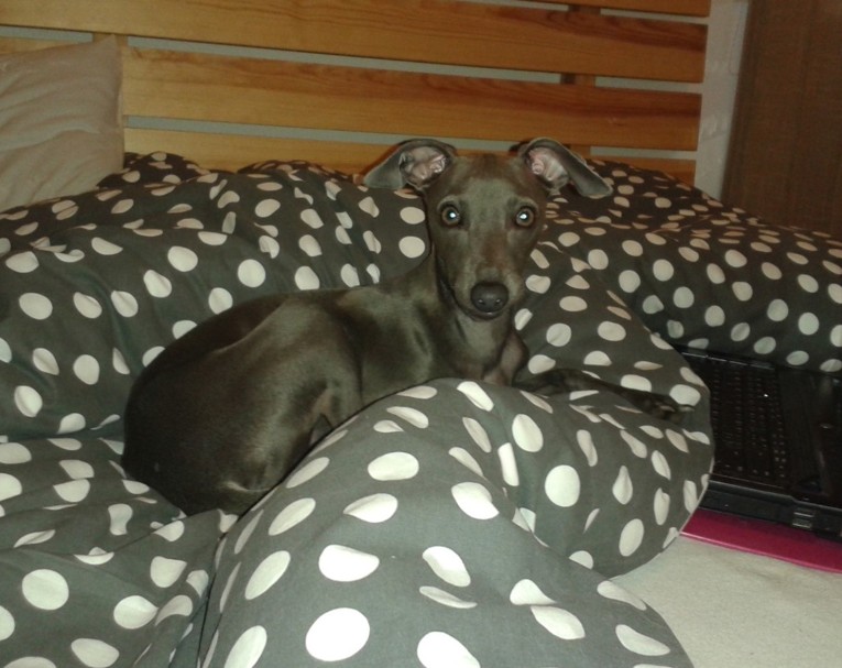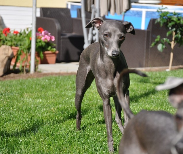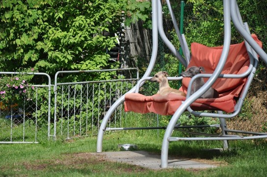 Bertuccia zatím zůstává doma na pozorování, bude vyšší a pevnější v kostře. Povahou je však opak hodné Beli, dokonce jsme zjišťovali jestli není hluchá. Ne není, je to zkrátka náš první chrtík co neslyší, neposlouchá a zkrátka si dělá co chce.